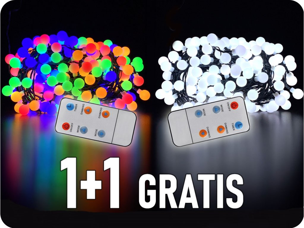 LED 2-in-1 Weihnachtslichterkette für den Außenbereich, Kugeln, Fernbedienung, 200 LEDs, RGB+W, 8 Funktionen, 1+1 GRATIS! [1V09-RGB]