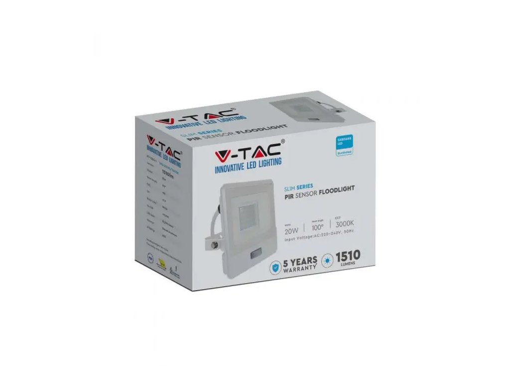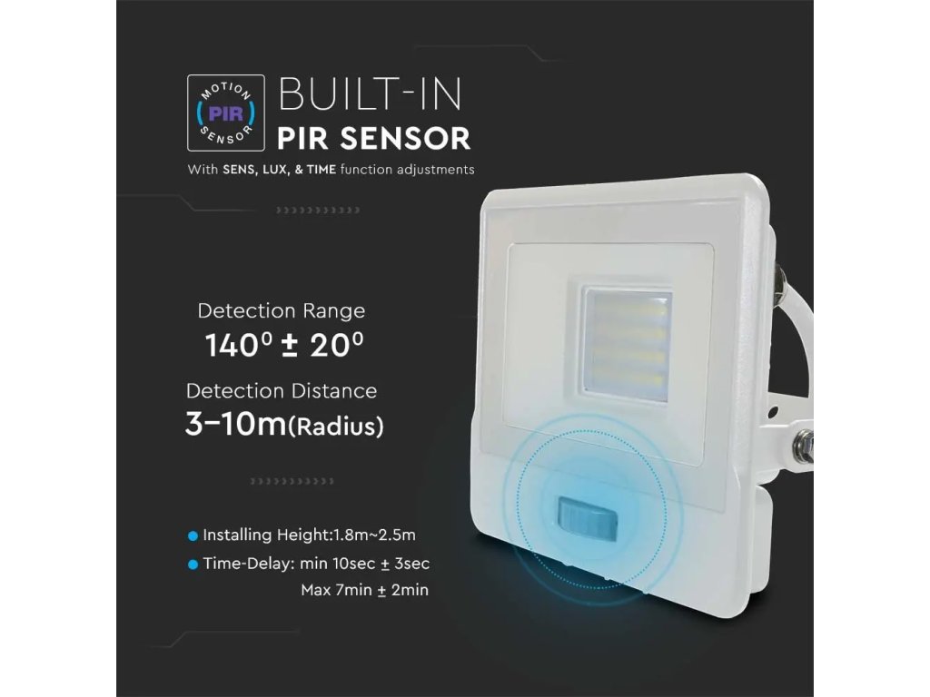 LED Sensor Fluter/Scheinwerfer mit PIR-Sensor, 20W, 1510lm, Samsung Chip, 1m Kabel, 100°, IP65, weiß, 1+1 gratis!