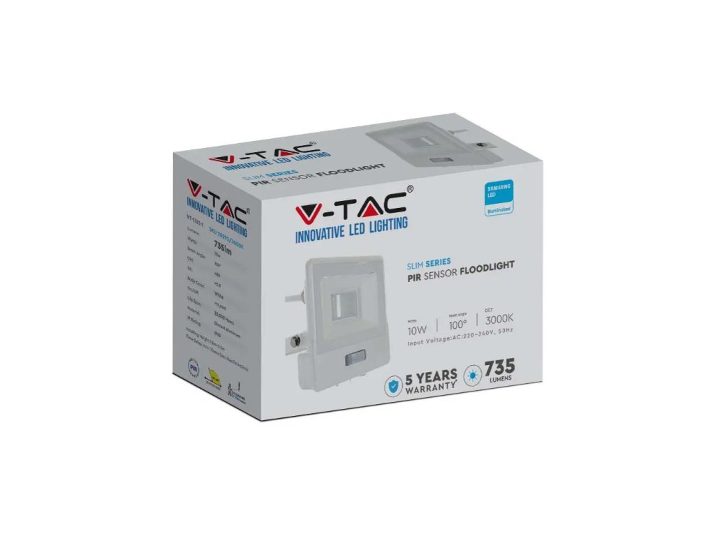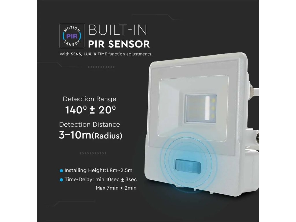 10W LED Sensor Fluter/Scheinwerfer mit PIR-Sensor 10W, 735lm, Samsung Chip, 1m Kabel, weiß, 1+1 gratis!