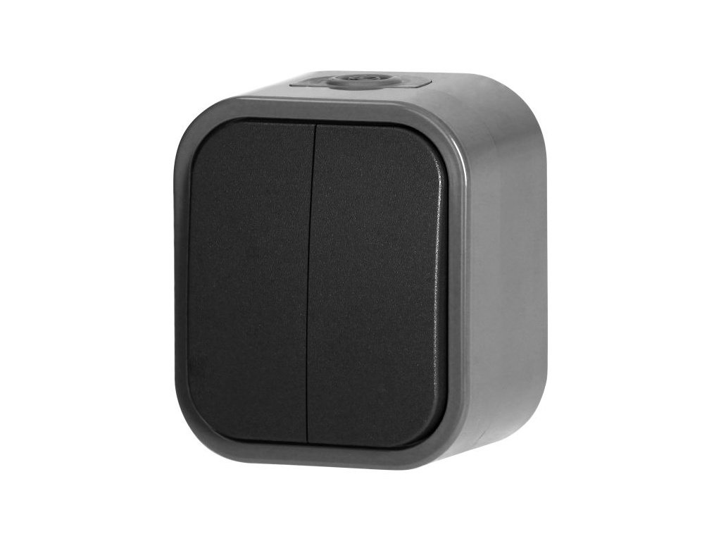 2-Tasten Aufputzschalter 10A 250V IP54 grau/schwarz [OR-OE-7801/GB]
