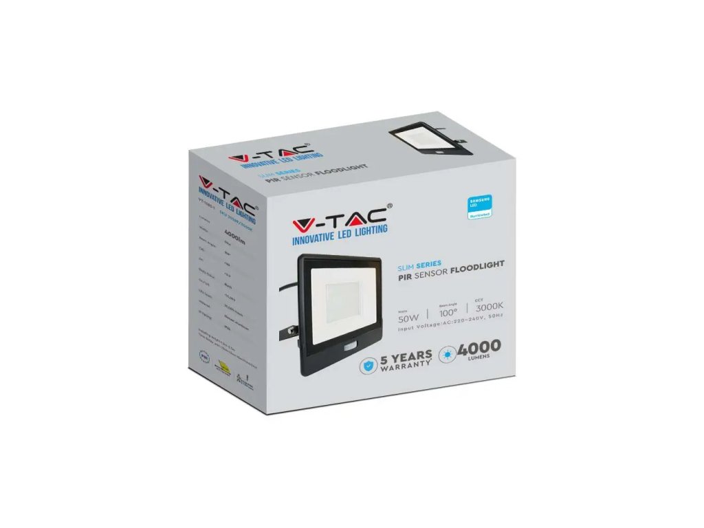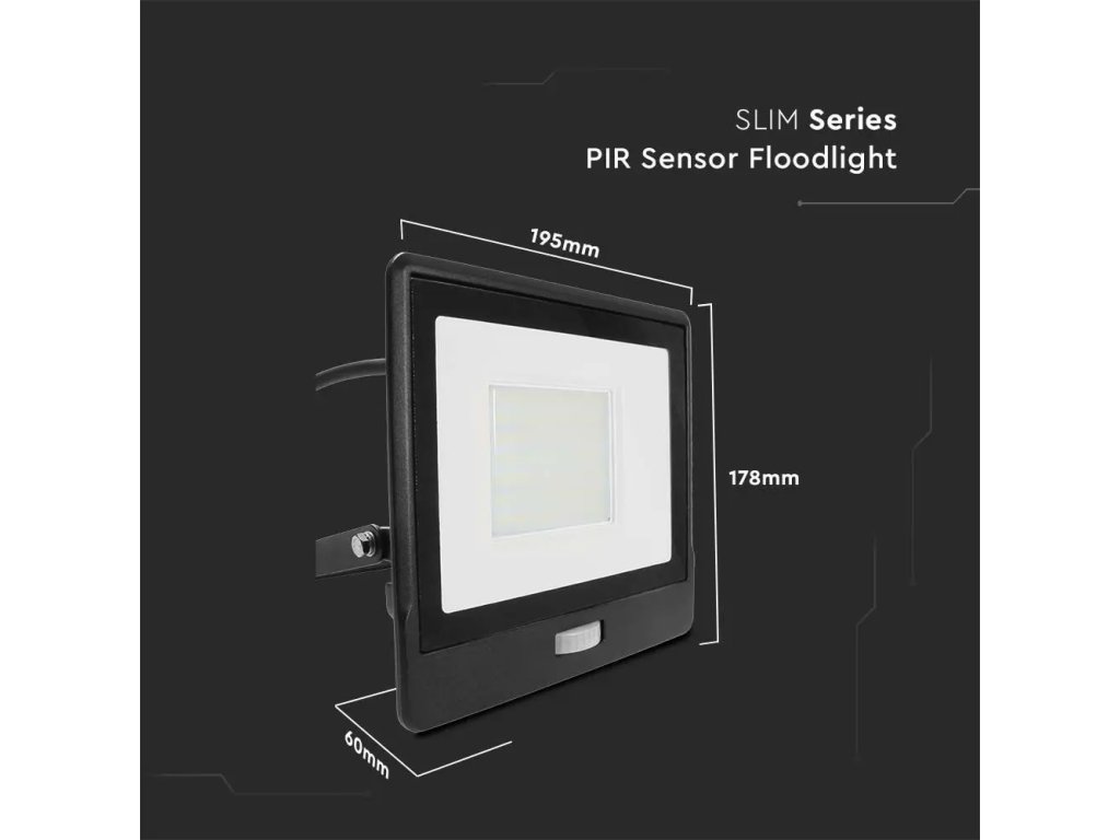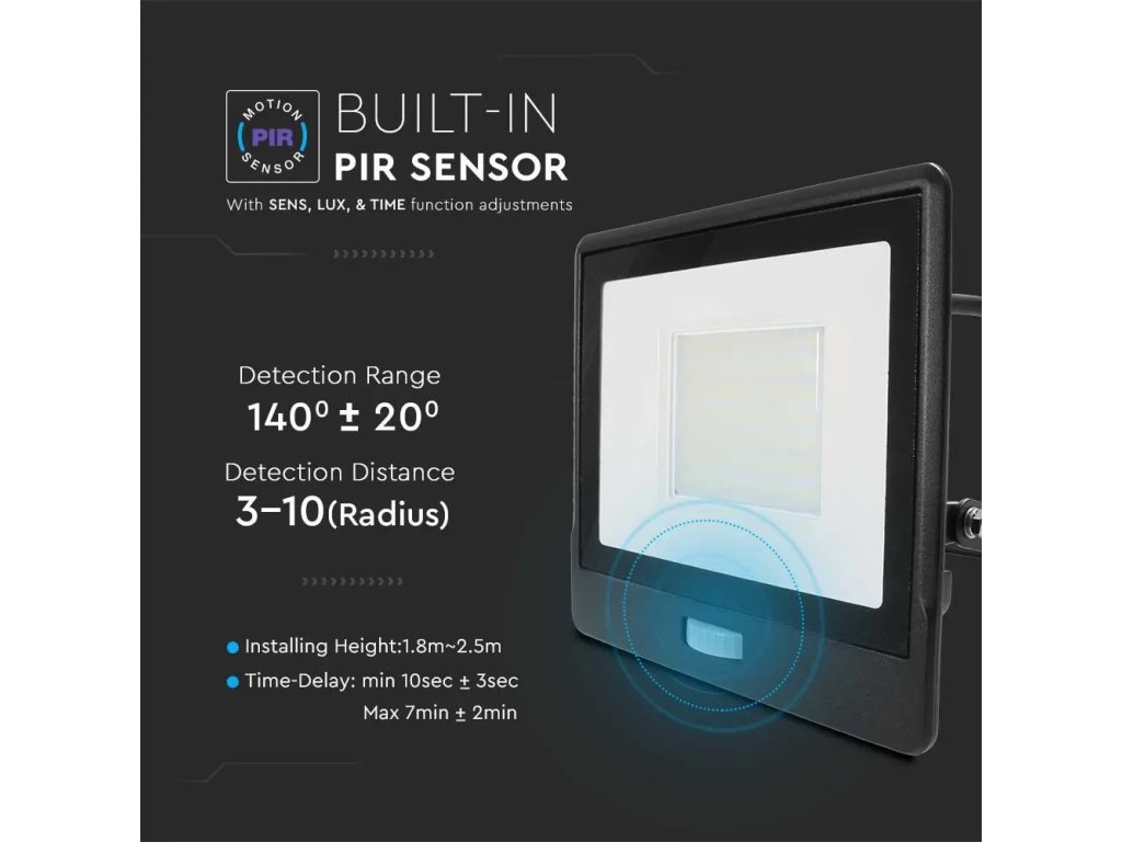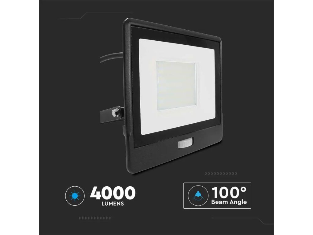 50W LED Sensor Fluter/Scheinwerfer mit PIR-Sensor, 4000lm, Samsung Chip, 1m Kabel, P65, schwarz/2-PACK!