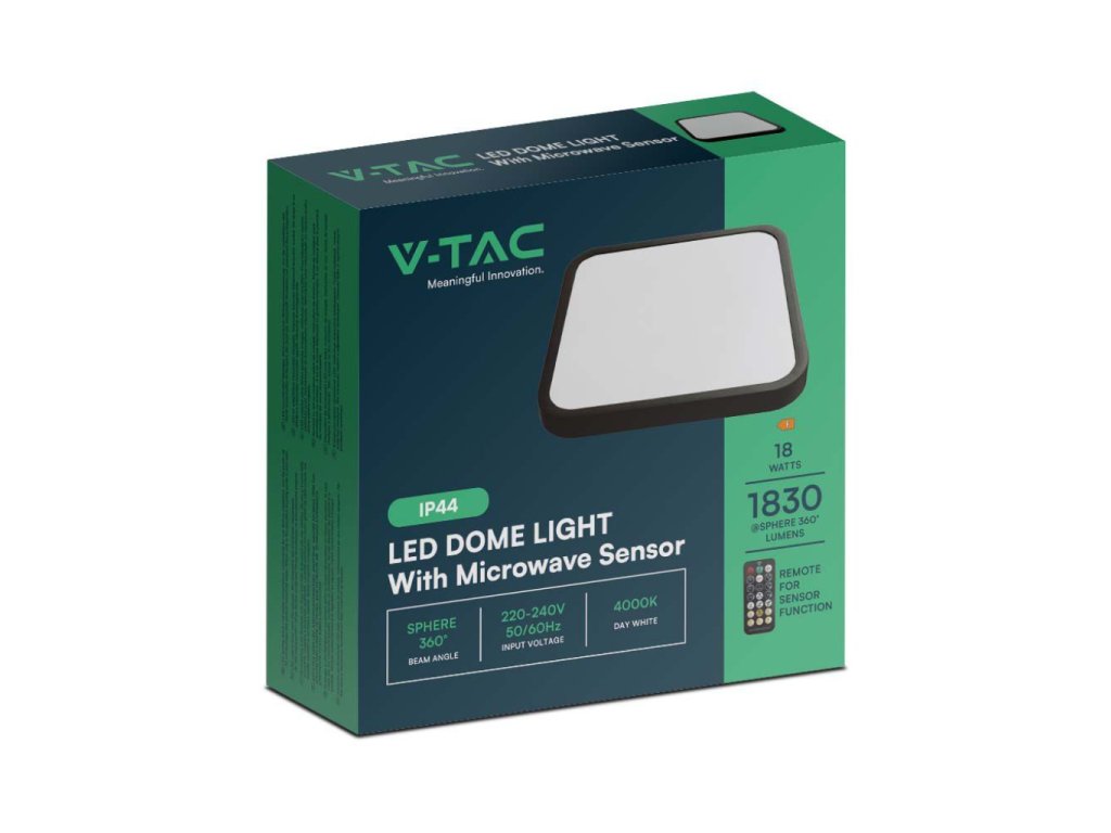 Deckenleuchte mit Mikrowelle und Lichtsensor 18W, 1830lm, IP44, 4000K, quadratisch, schwarzer Rahmen