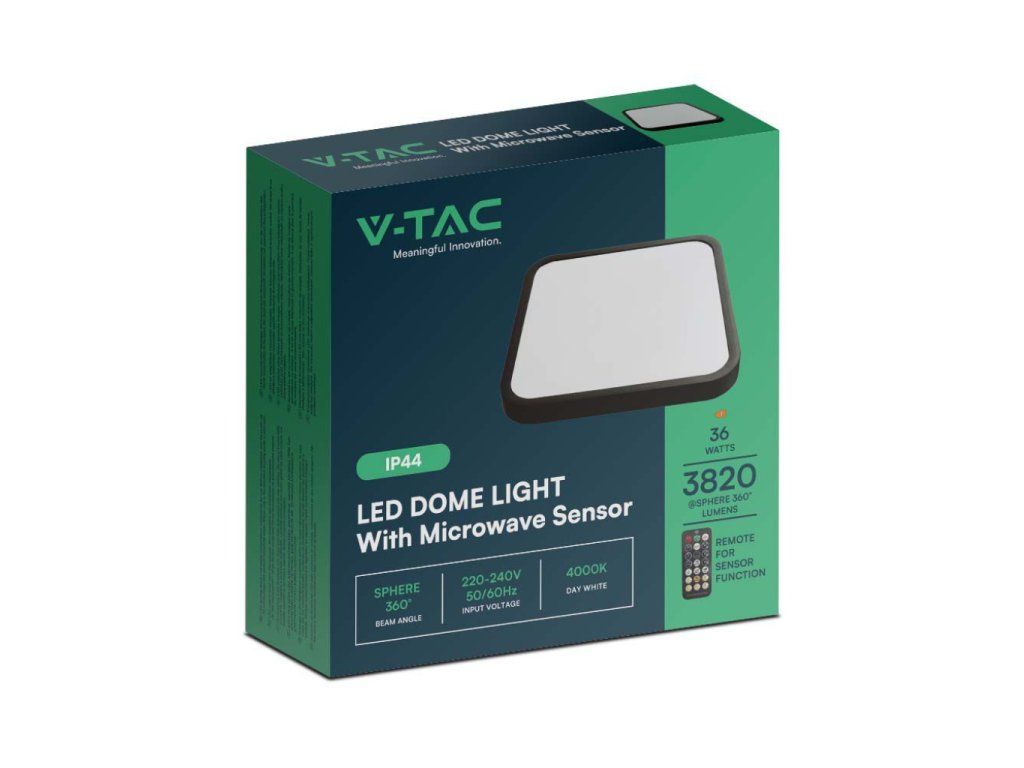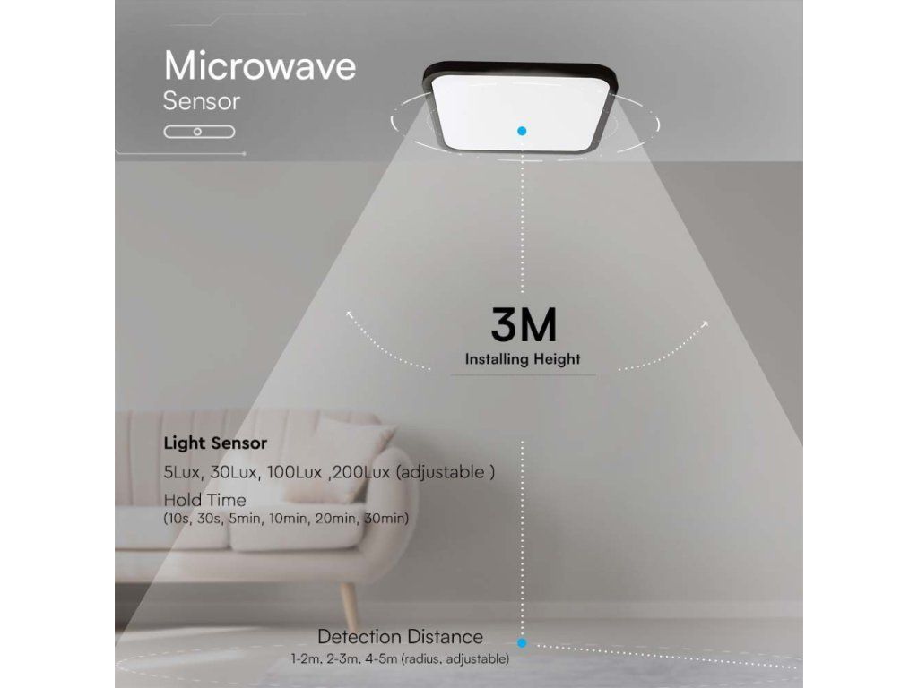 Deckenleuchte mit Mikrowelle und Lichtsensor 36W, 3820lm, 4000K, quadratisch, schwarzer Rahmen/2-PACK!
