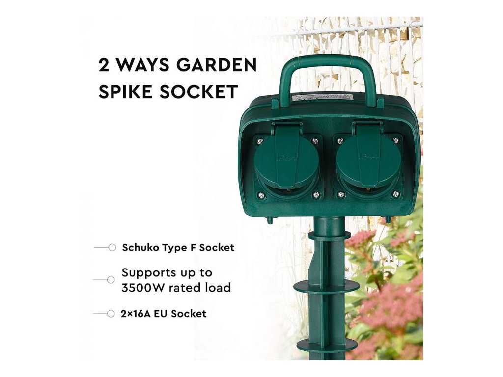 Gartenstange, 2 Steckdosen mit mechanischer Zeitschaltuhr (3G 1,5mmx3m), IP44, max. 3500W, grün