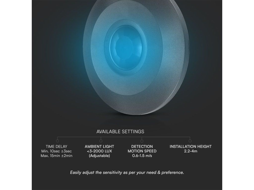 Infrarot-Bewegungsmelder für die Decke, 360°, komplett schwarz
