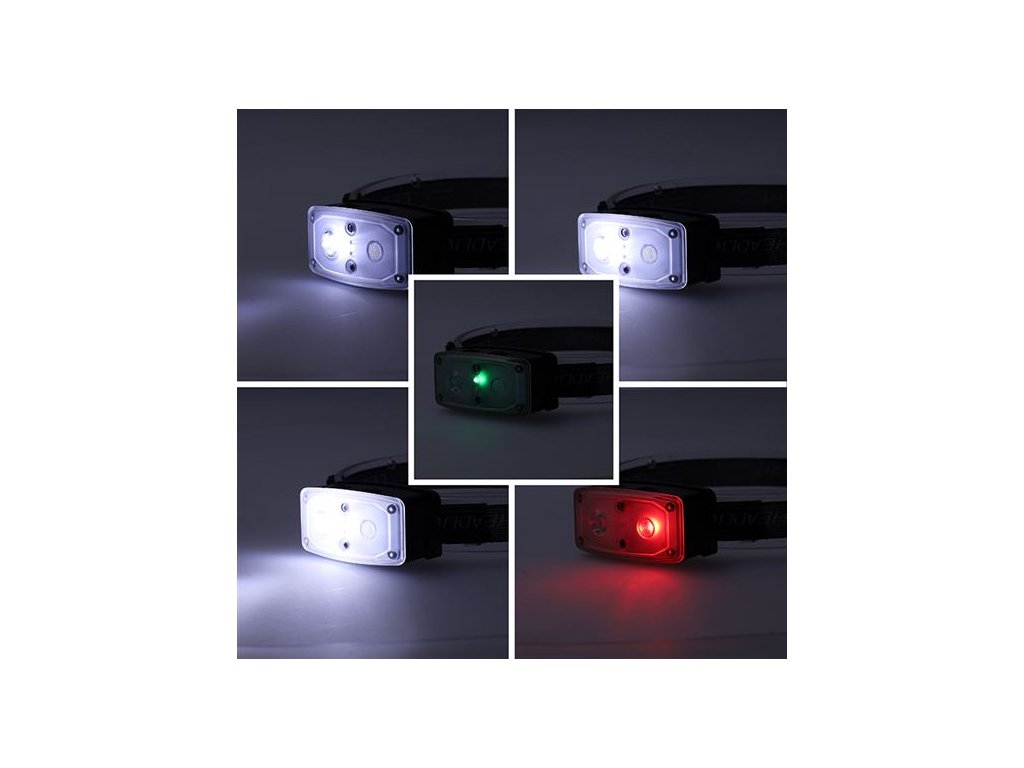 - 5 Leuchtmodi: Weiß 30 %-50 %-100 %; Rot: 100 %-blinkend.