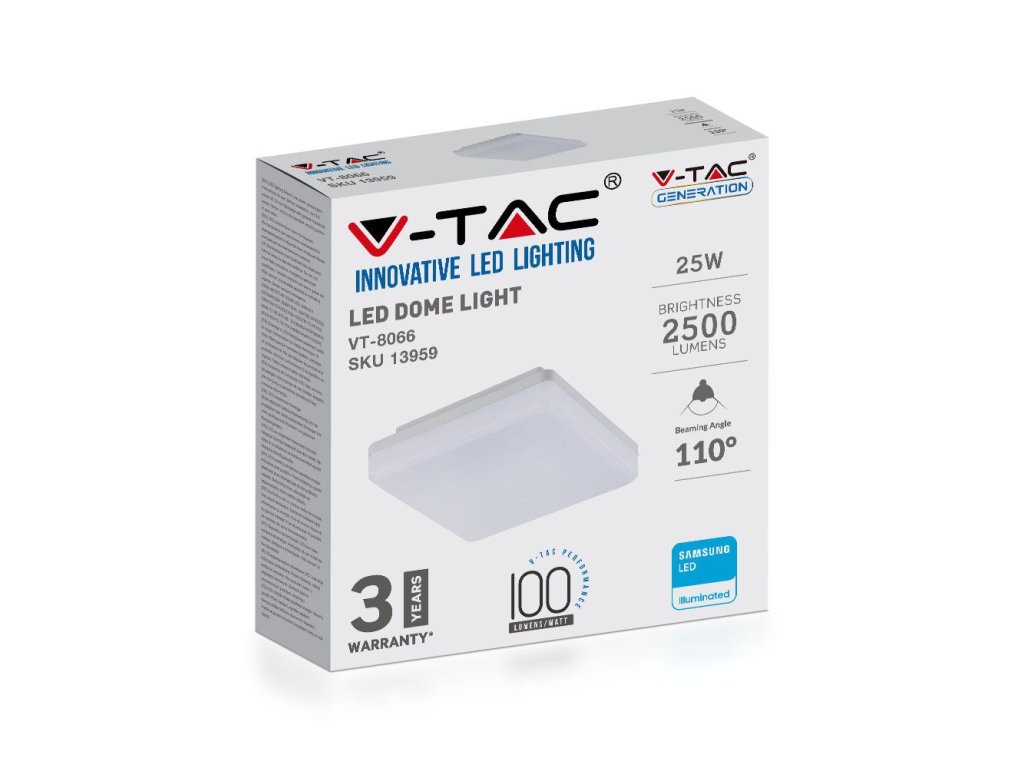 | Lumen (lm): | 2500 (100lm/W) |