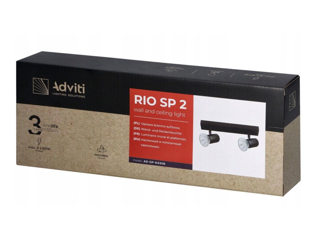 LED-Deckenleuchte für den Innenbereich 2xGU10, RIO, schwarz, 1+1 gratis! [AD-OP-6430BGU10]