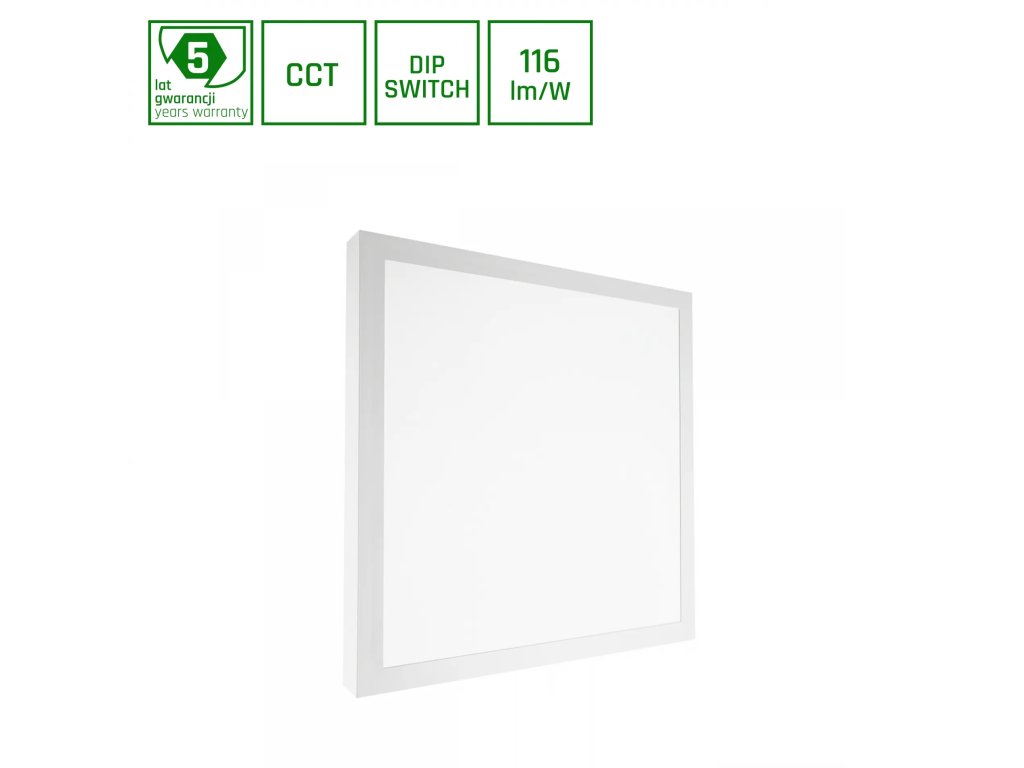 - Einstellbare Leistung 24/35/40 W und Lichtfarbe 3000/4000/6000 K über DIP-Schalter vor der Montage