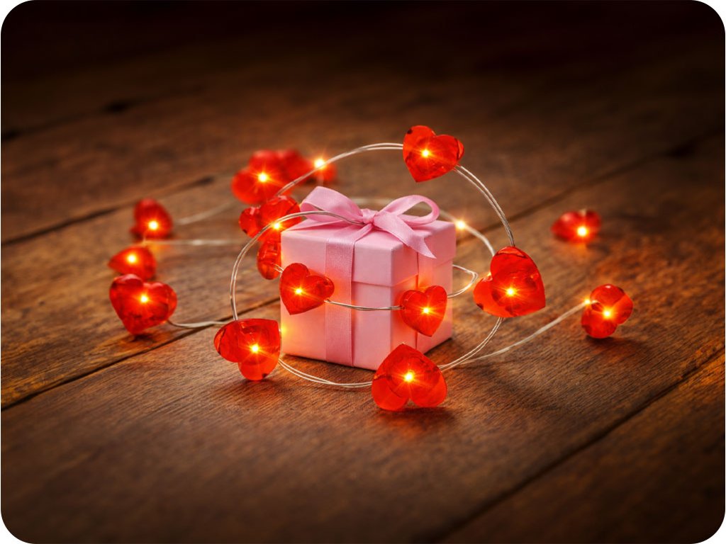 LED Dekokette Herz 2m, 20LED, 2xAA ohne Funktionen [X01204115]