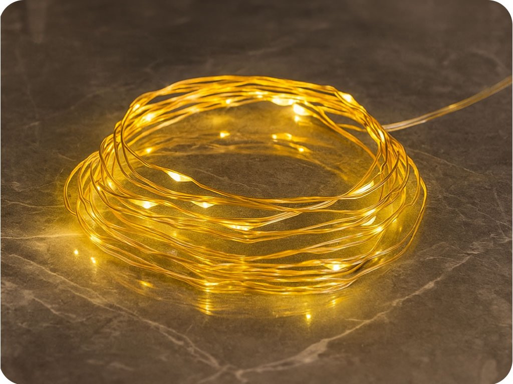 LED-Dekorkette 5m, 50 LED, 3xAA, warmweiß, ohne Funktionen, gold [X0150131]