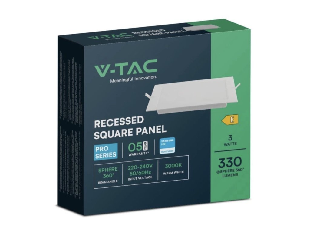 LED Einbaupanel mit Netzteil 3W, 330lm, Backlit, quadratisch, IP20, 1+1 gratis!