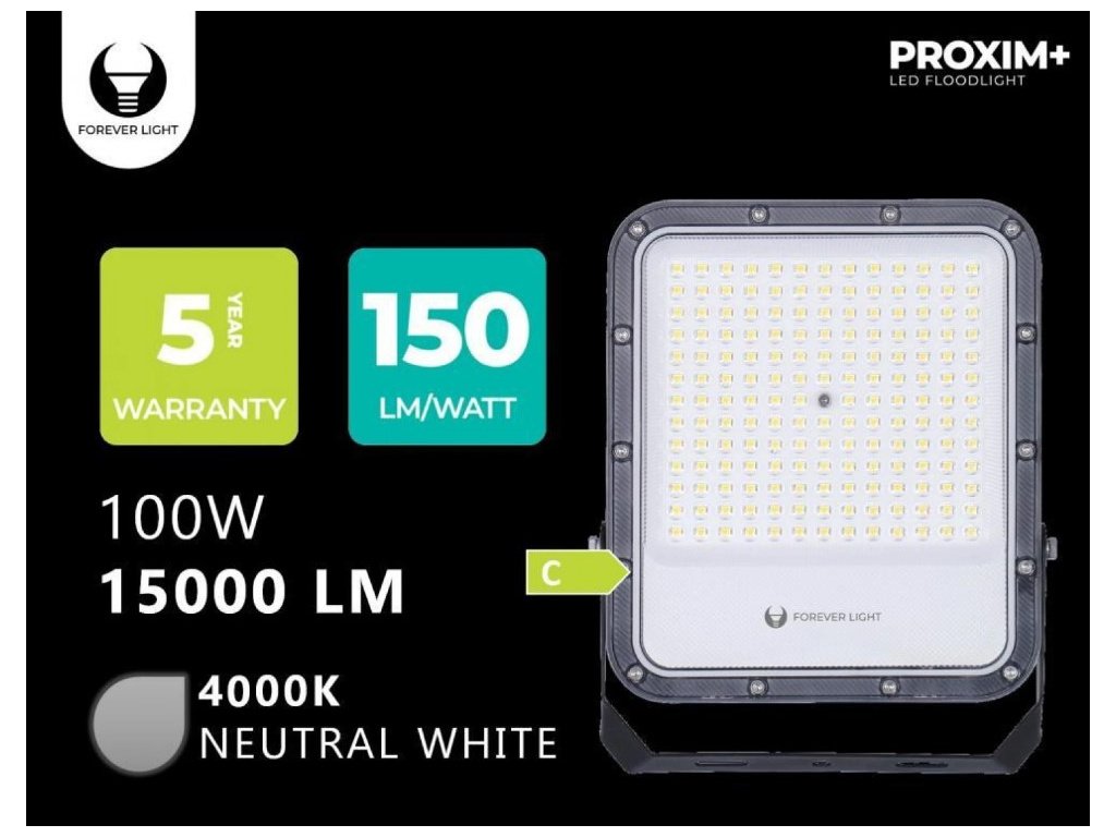 LED FLUTLICHT / SCHEINWERFER + 100W, 15000LM, IP65, IK07