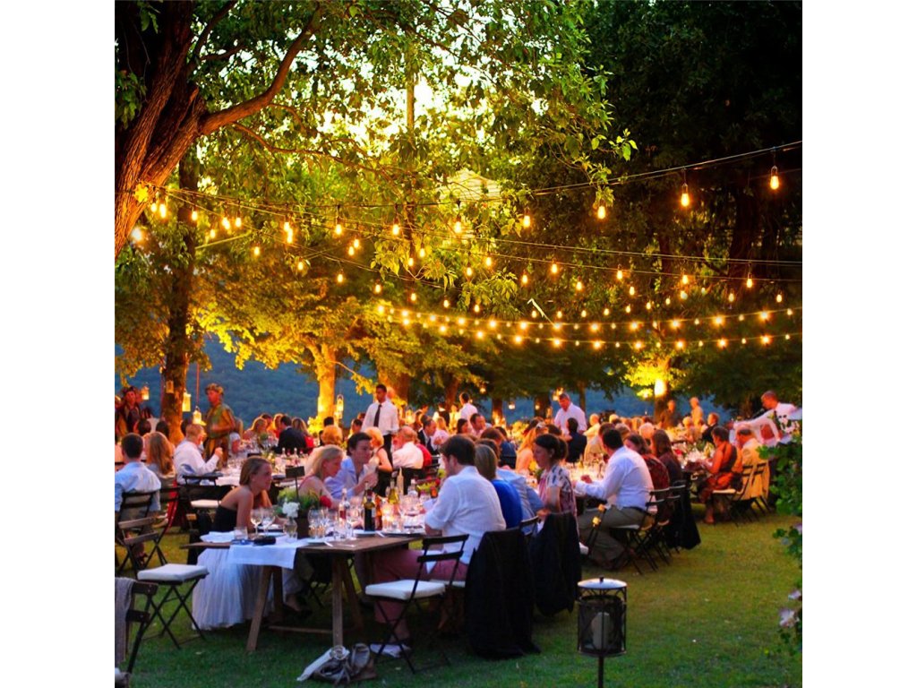 - Der Abstand zwischen den Zwiebeln beträgt 1 Meter und die Länge des ganzen Kranzes beträgt 12 Meter. Die ersten 2 Meter vom Stecker bis zur ersten Glühbirne ermöglichen es Ihnen, eine Girlande frei zu installieren, ohne sich Sorgen machen zu müssen, dass die erste Glühbirne zu nah ist und der letzte Meter des Kabels ermöglicht es Ihnen, sie bequem mit einer weiteren Girlande zu verlängern. Der Querschnitt des 2x0,75 mm2 Drahtes ermöglicht es Ihnen, bis zu 10 Girlanden anzuschließen und einen größeren Bereich, wie Tanzflächen, Restaurants oder große Gärten, zu beleuchten.