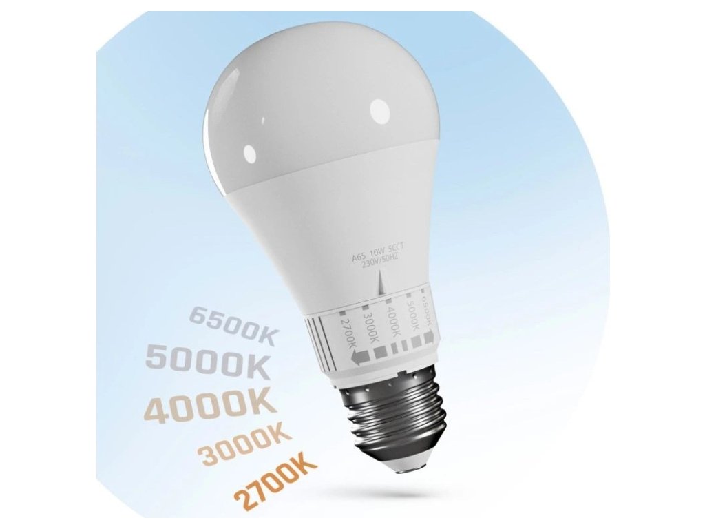 LED- Lampe E27, 10 W, 1100 lm, 5 CCT 2700/3000/4000/5000/6500 K [WOJ+14715]