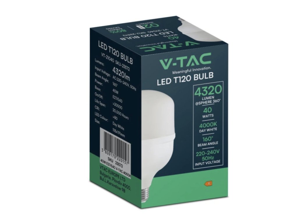 LED LAMPE E27/E40, T120, 40W, 4320LM, 160°, IP20, 1+2 gratis!