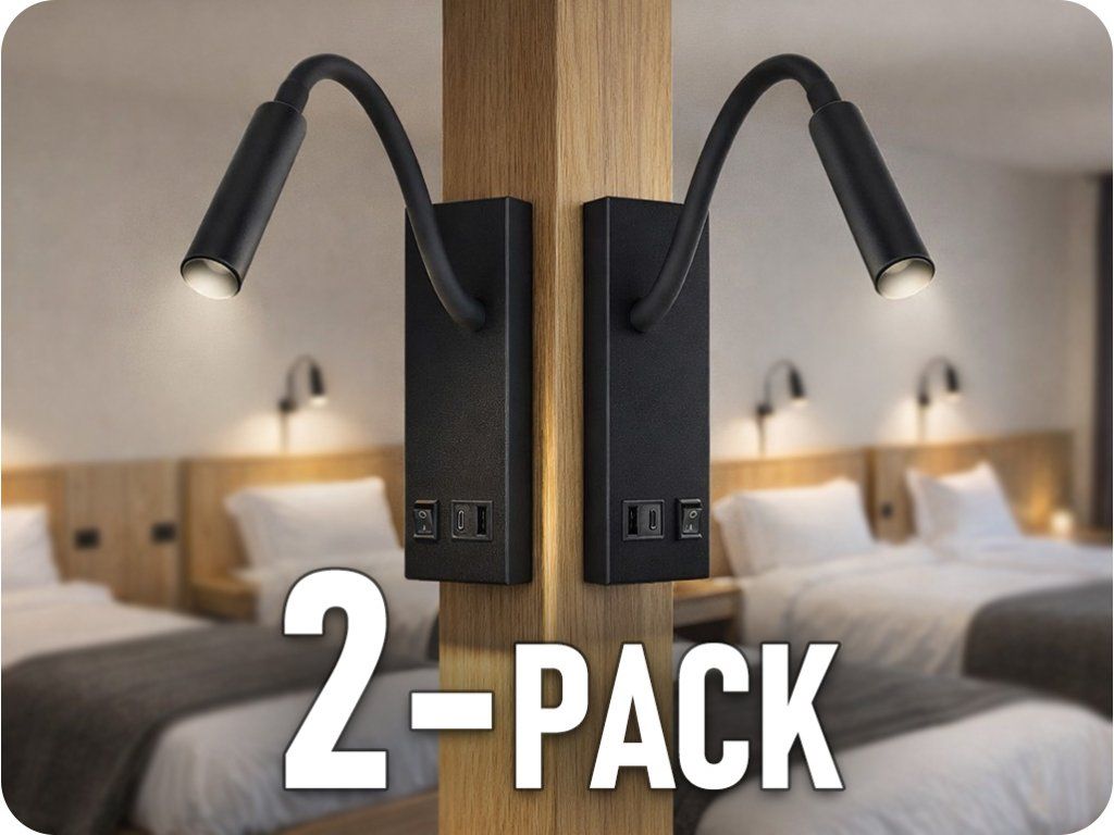 LED-Lampe für das Bett 3W, 120lm, CREE CHIP, USB-C + USB, schwarz/2-PACK!