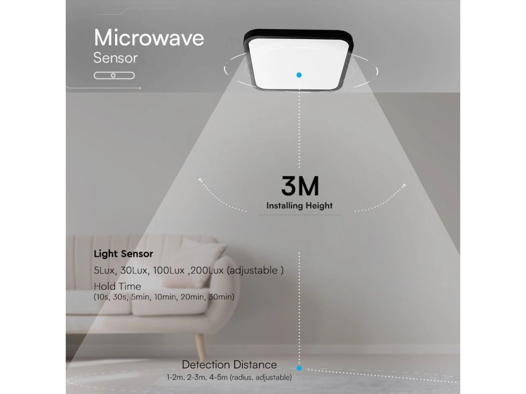 LED-Leuchte mit Mikrowelle und Lichtsensor 36W, 3820lm, IP44, 4000K, eckig, schwarzer Rahmen