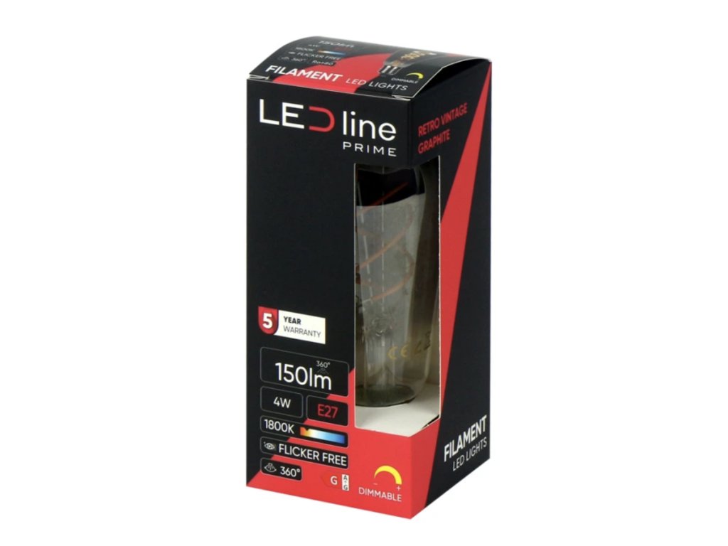 LED LINE® DIMMBAR, RETRO LED GLÜHBIRNE E27, 4W, 150LM, ST64, ULTRA-HELL 1800K, SCHWARZ [202412]
