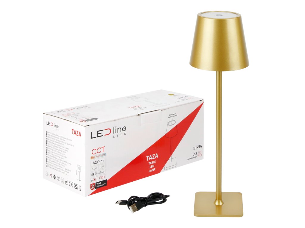 TISCHLAMPE TAZA 3,5W, 400LM, CCT, IP54, WIEDERAUFLADBAR, 2X2000MAH, GOLD, 1+1 gratis! [208964]