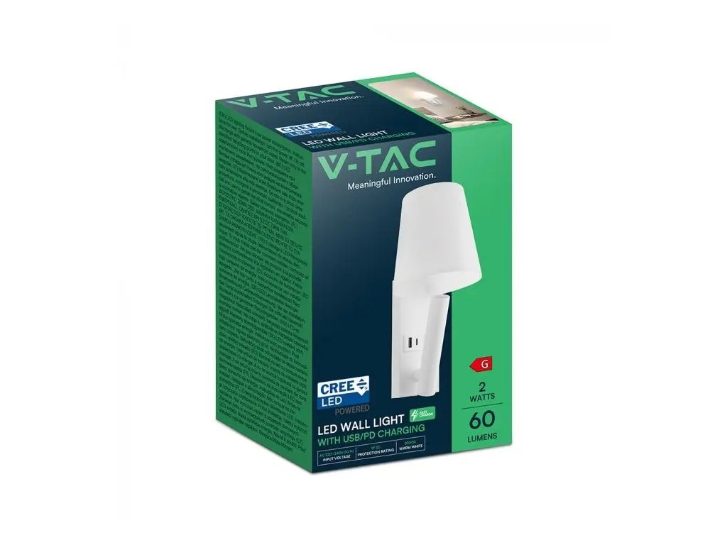 LED Nachttischlampe 2W, 60lm, USB/PD, CREE CHIP, weiß/2-PACK!