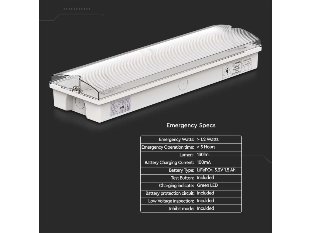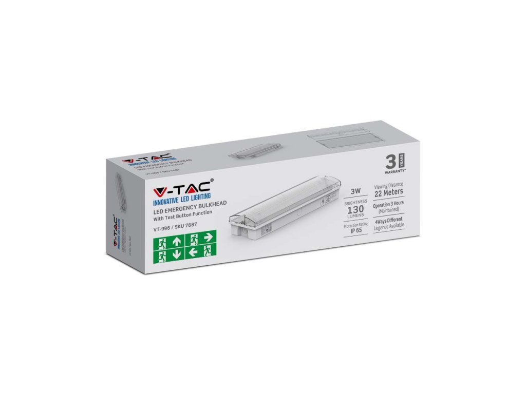 LED-Notbeleuchtung 3W, 130lm, IP65, Prüftaste, 2+1 gratis!