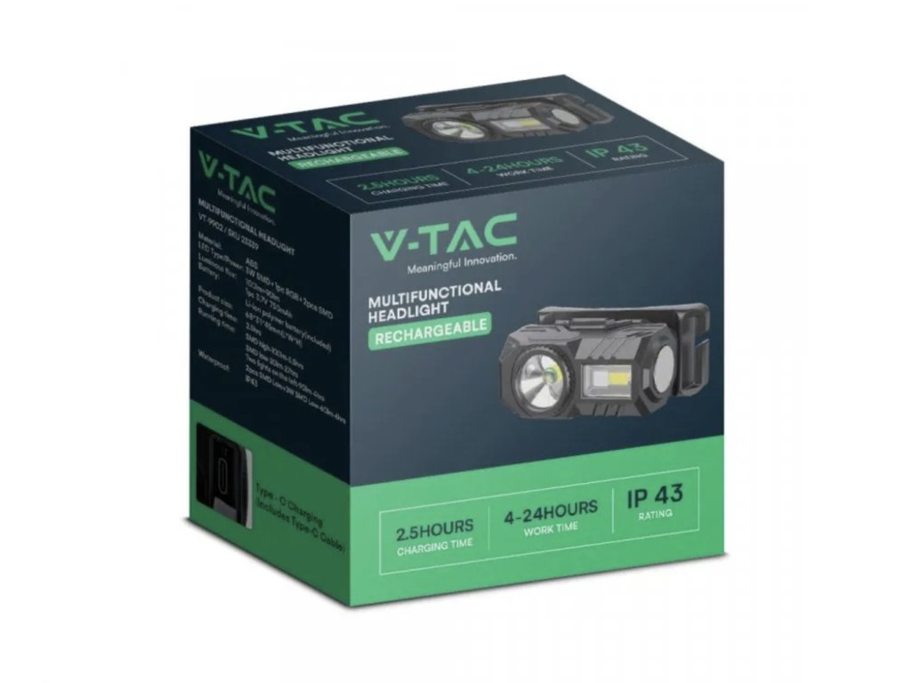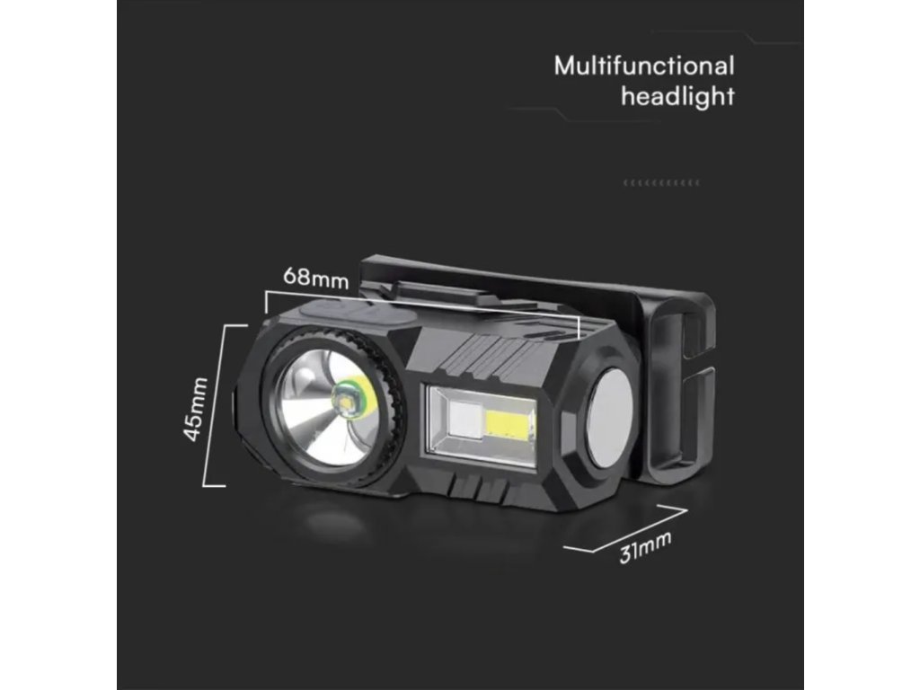 LED-Stirnlampe, WIEDERAUFLADBAR, 3W, 100LM, RGB, USB-C LADEN, IP43, 750MAH