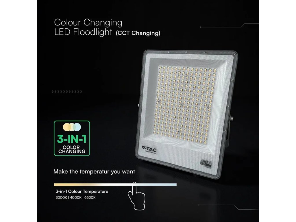 LED-Scheinwerfer 200W, 16450lm, CCT-Farbwechsel, CREE CHIP, schwarz/3-PACK!