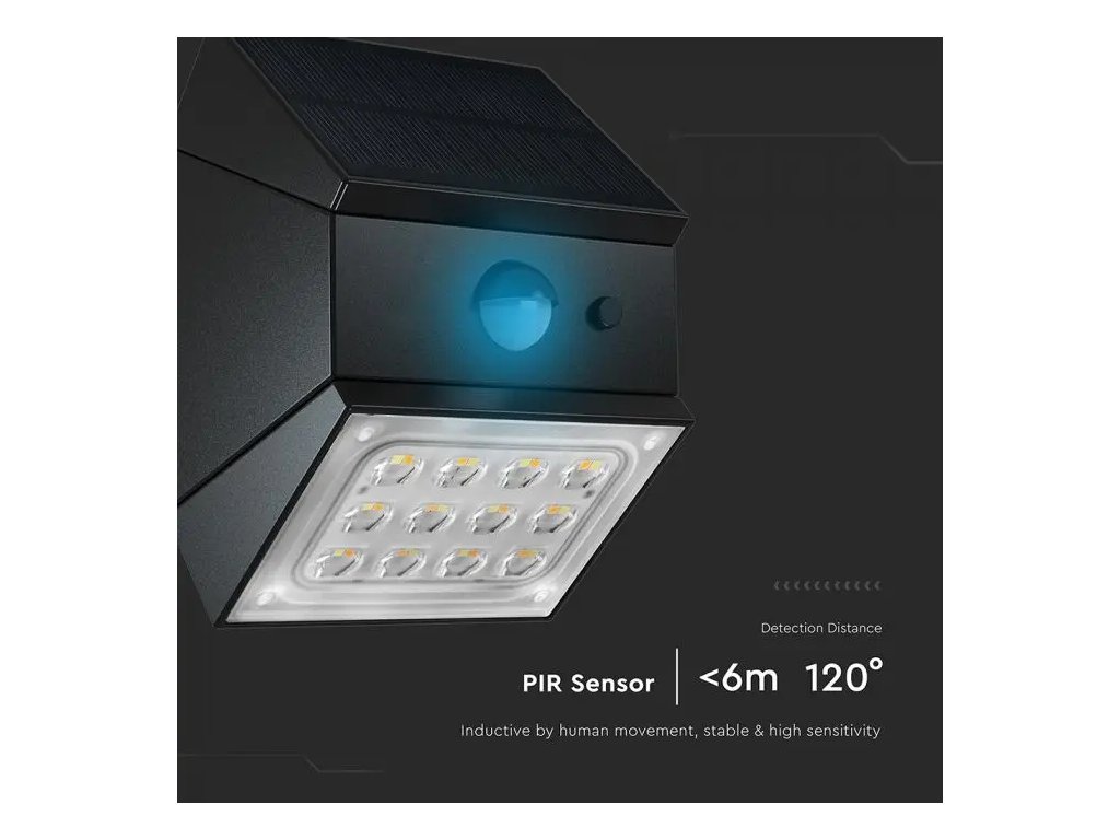 LED-Solar-Wandleuchte mit Sensor 2,5 W, 300 lm, CCT, schwarz