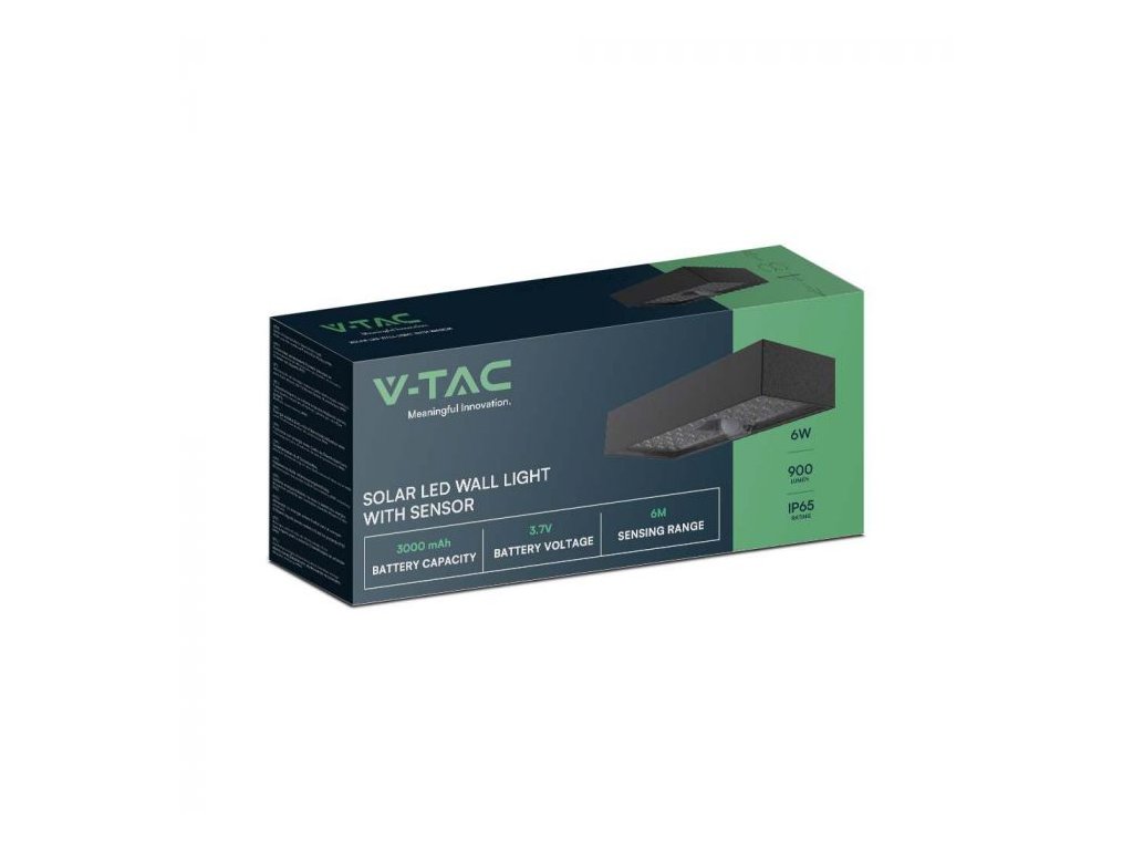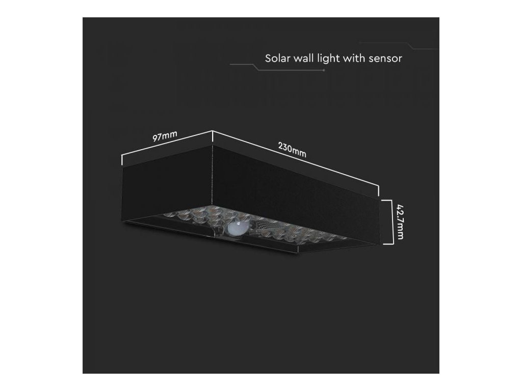LED-Solarwandleuchte mit Sensor 6W, 900lm, 3000mAh, 4000K, schwarz, IP65