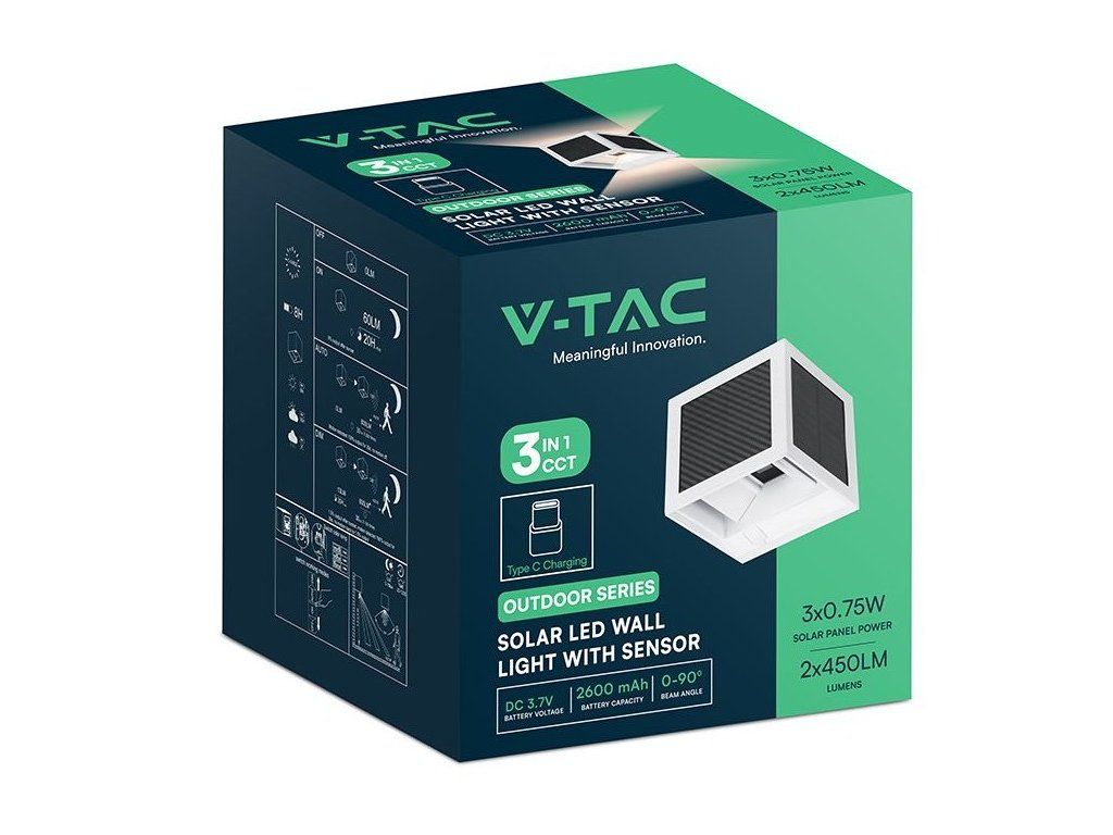 LED-Solarwandleuchte mit PIR-Sensor, 2,25W, 900lm, CCT, 1+1 gratis!