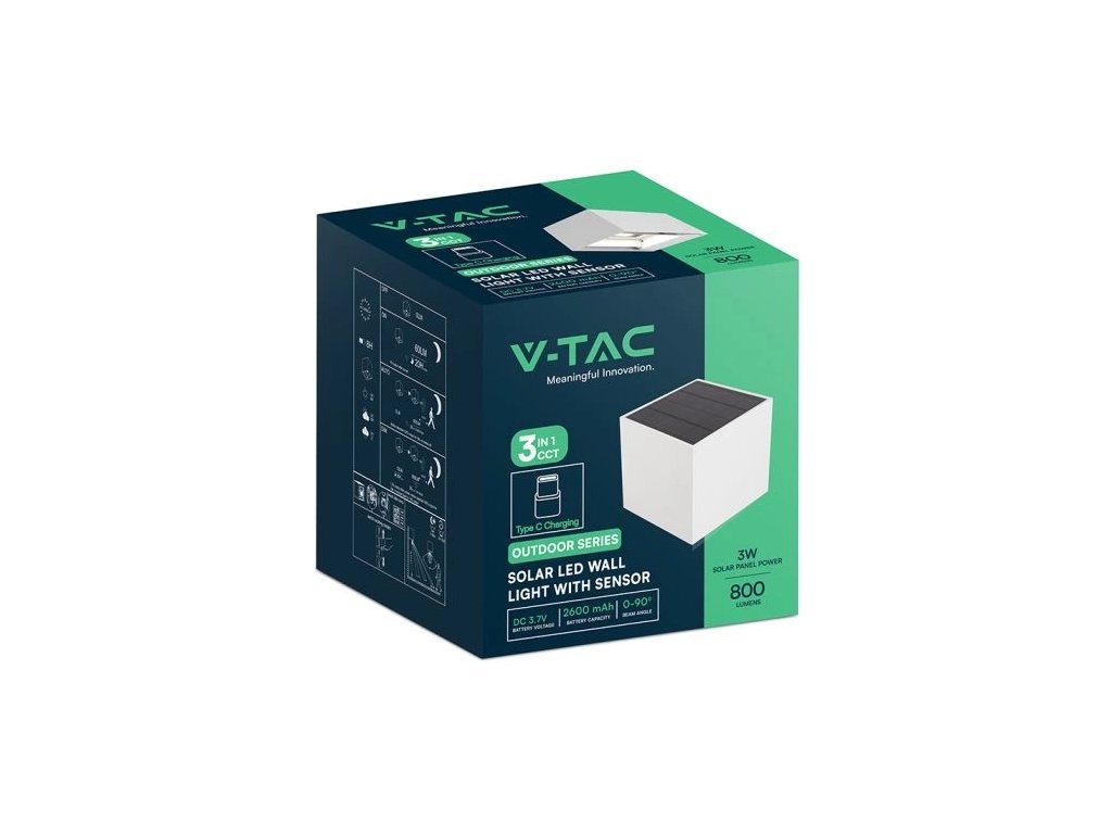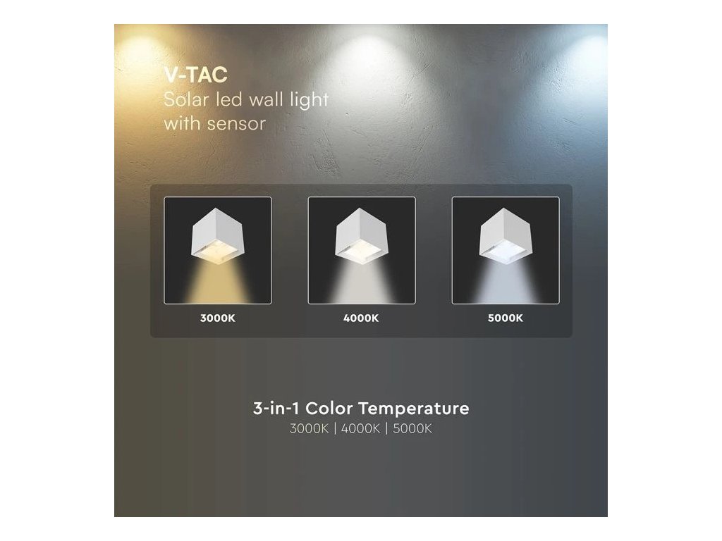 LED-Solarwandleuchte mit PIR-Sensor, 9 W, 800 lm, CCT, IP65, weiß