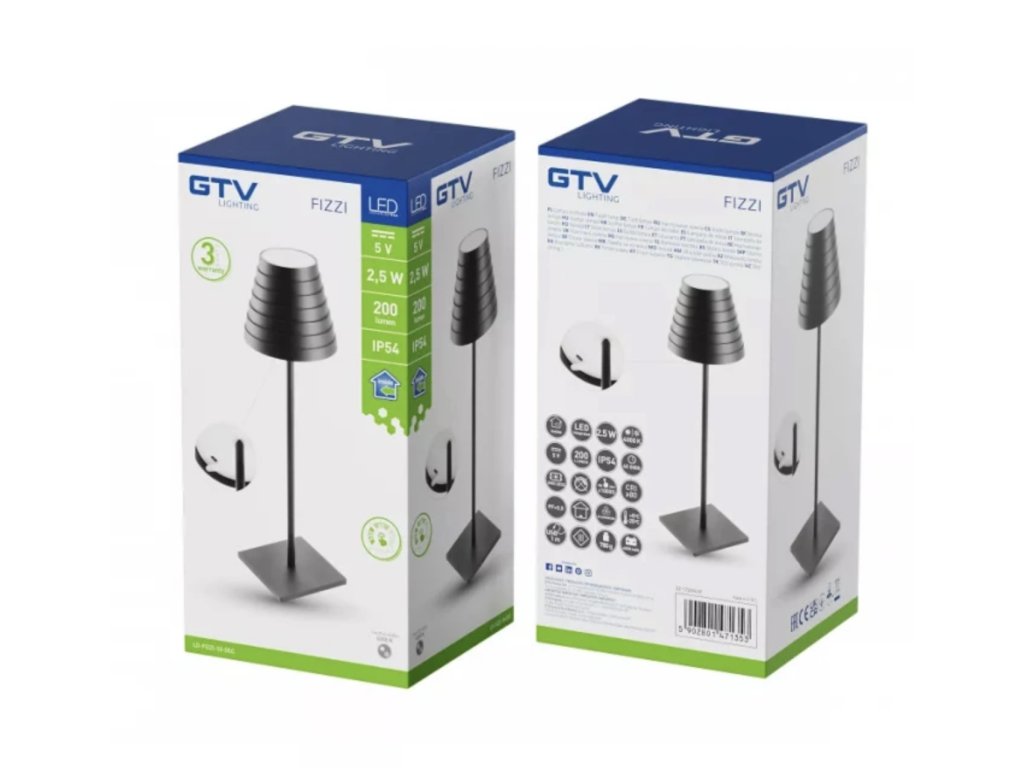 LED TISCHLAMPE FIZZI 2,5W, 200LM, 4000MAH, 5V, DIMMBAR, 4000K, IP54, SCHWARZ [LD-FIZZI-10-DEC]