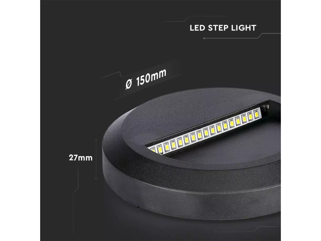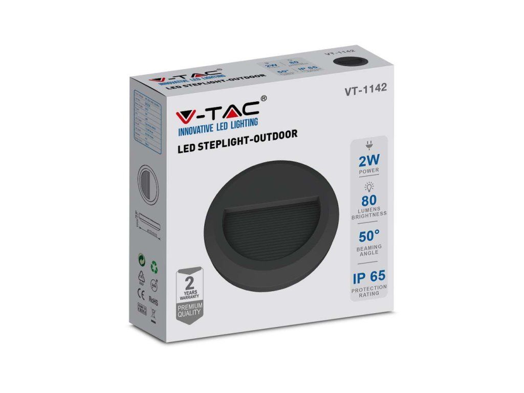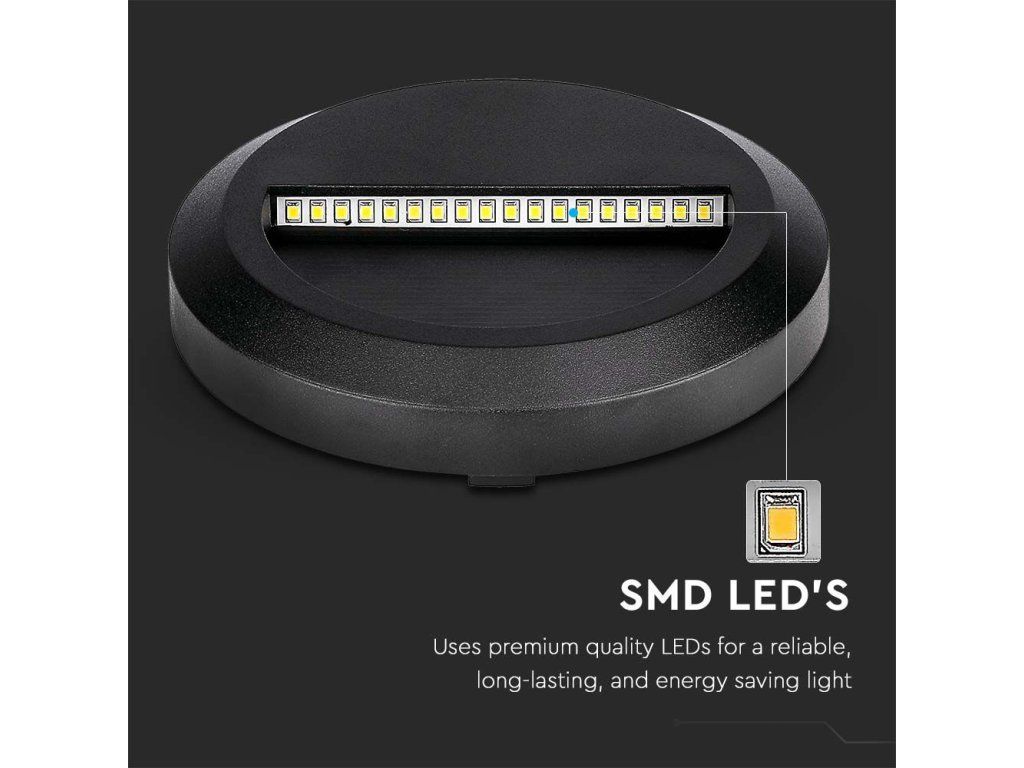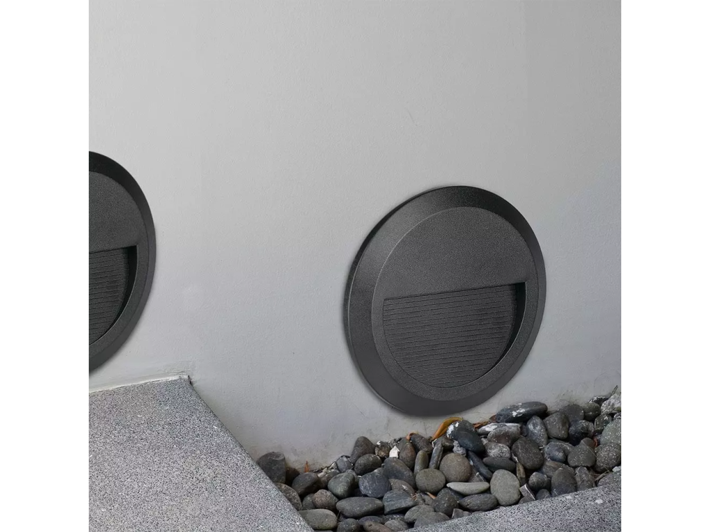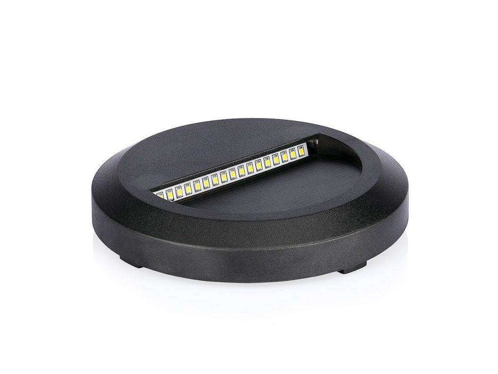 LED Treppenlicht, 2W, 80lm, IP65, rund, schwarz/2-PACK!