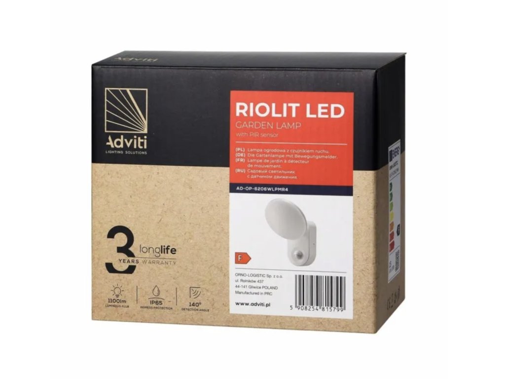 LED WANDLEUCHTE MIT SENSOR RIOLITE 15W, 1100LM, IP65, 4000K, WEISS [AD-OP-6206WLPMR4]