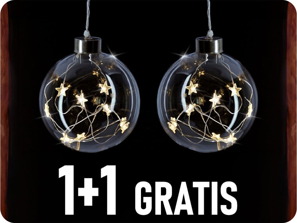 LED Weihnachtskugel Glas, 10LED, 2xAA, 1+1 gratis! [1V204]