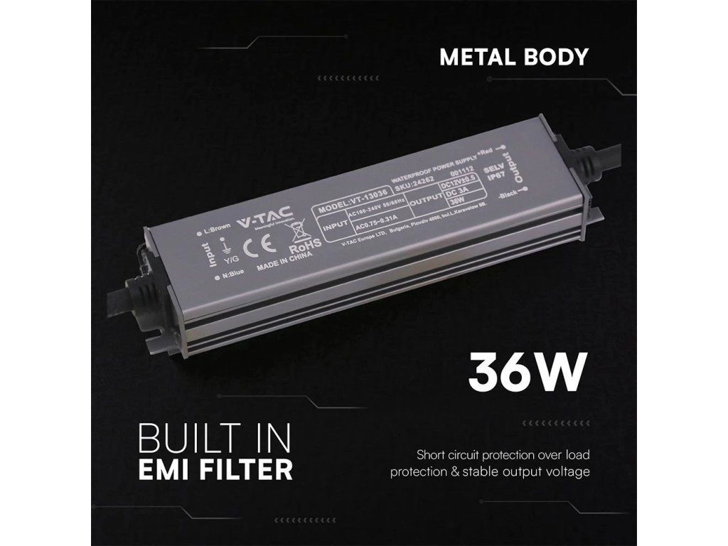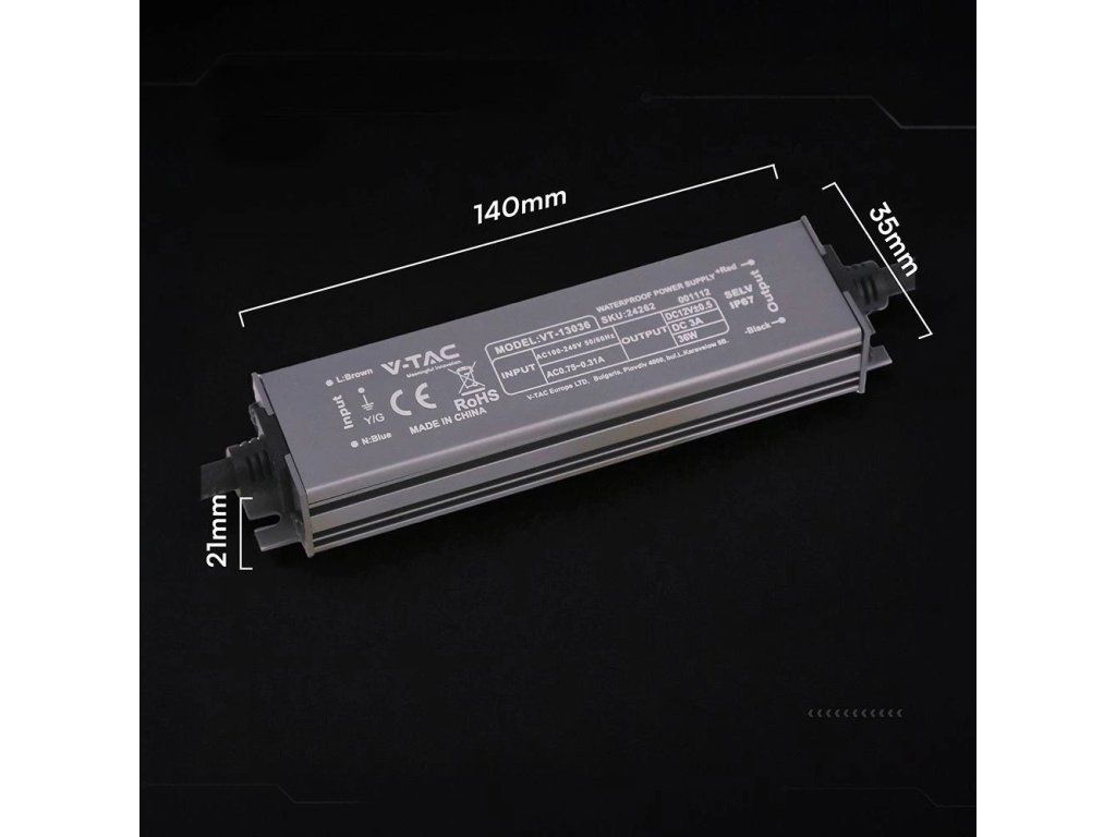 Netzteil für LED 36W, 12V, 3A, IP67