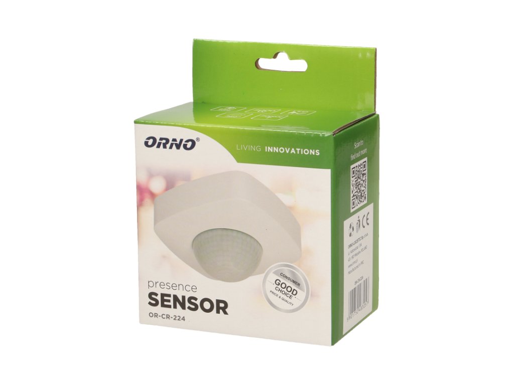 PIR-Präsenzsensor 360° max. LED 500W 3-2000lux min10 sek. maximal: 30min. Reichweite Durchmesser 20m weiß [OR-CR-224]