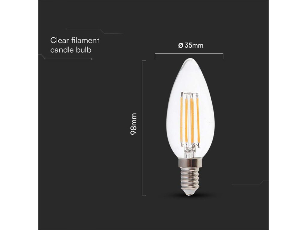 Retro LED-Lampe E14, 6W, 800lm, 300°, Kerze