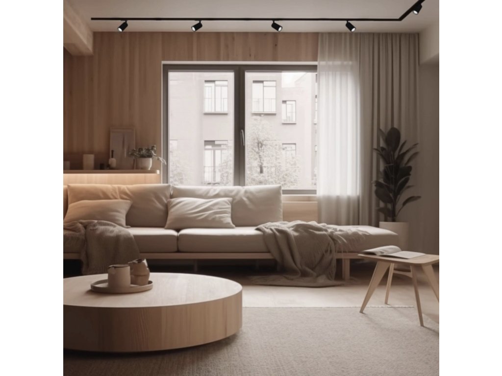 Die Schiene, an der die Madara-Leuchten befestigt sind, kann an der Decke befestigt oder an Seilen aufgehängt werden, z. B. über einem Tisch.