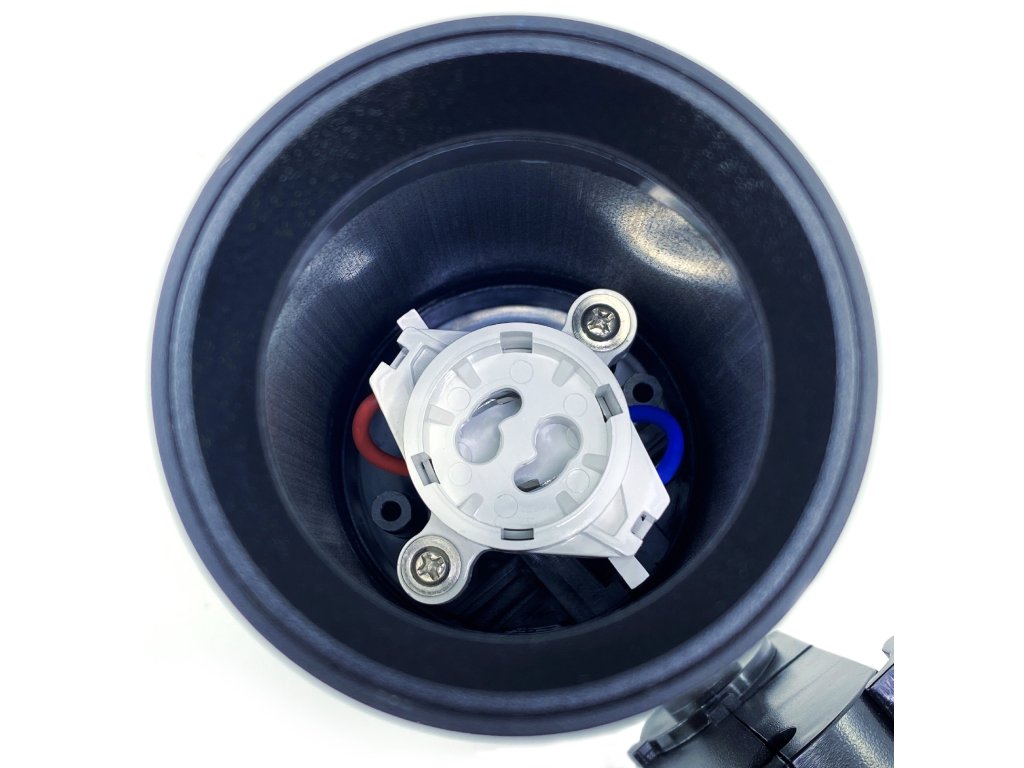 Die Leuchte kann mit einer LED-Lichtquelle (oder traditionell) mit GU10-Sockel ausgestattet werden.