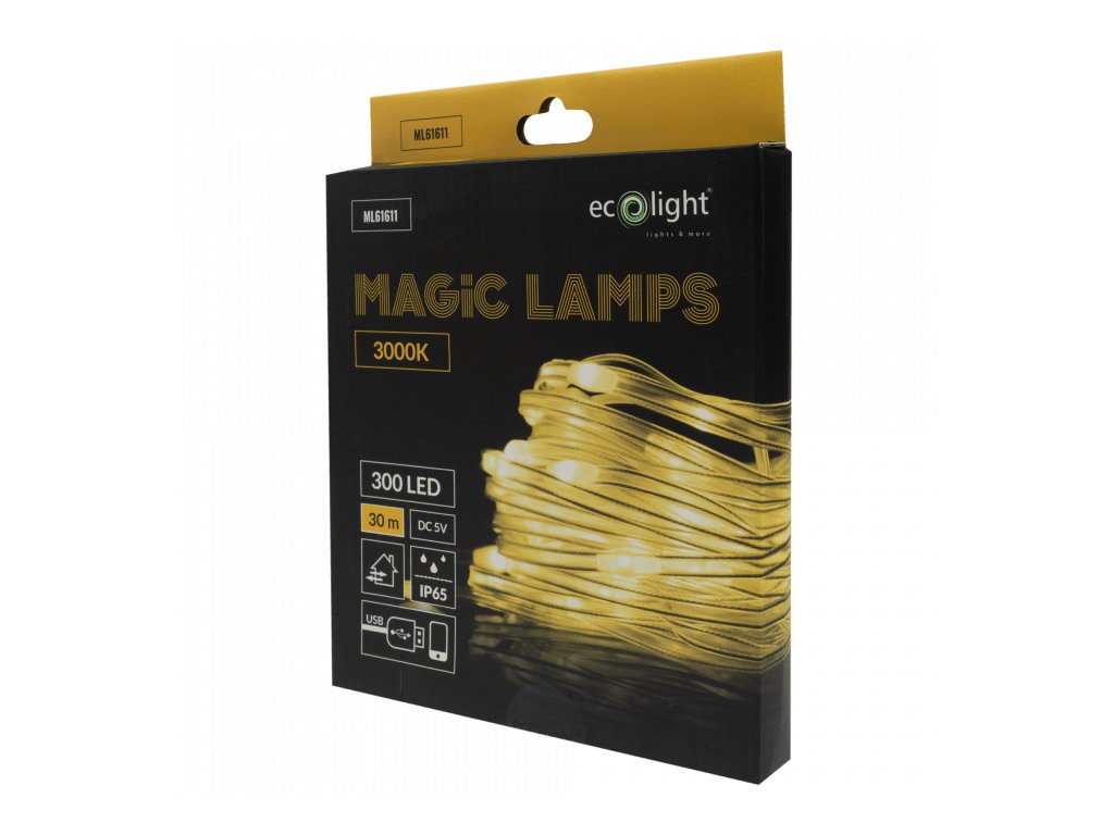 - Kette IP65 – für die Außendekoration; USB-Anschluss mit Schutzart IP20 für den Einsatz in trockener Umgebung.
