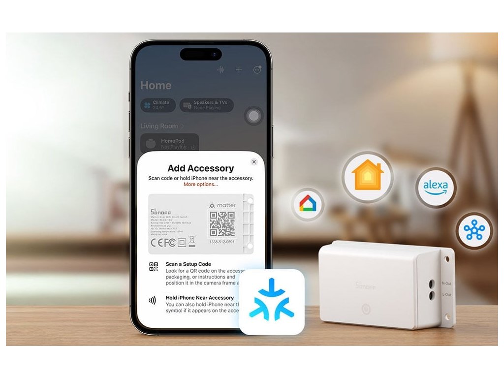 Die Installation ist denkbar einfach. Nach dem Anschließen der Stromkabel fügen Sie den Schalter einfach per QR-Code-Scan zur eWeLink-App hinzu. Anschließend können Sie das Gerät steuern, Automatisierungen erstellen oder Timer programmieren. Dank der Kompatibilität mit dem Matter-System integriert er sich nahtlos in Ihr Smart Home – ganz ohne zusätzliche Gateways oder Adapter.