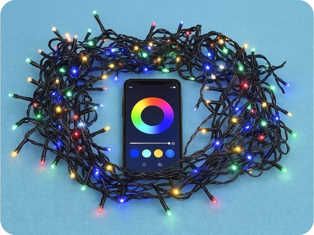 Solight LED WIFI Smart Outdoor Weihnachtskette, 400 LEDs, 20m, 5m Zuleitung, warmweiß + bunt [1V13-WIFI]