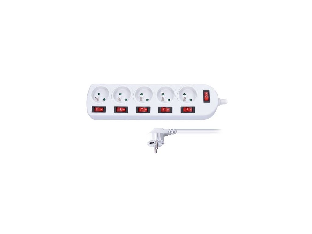 Solight Verlängerungskabel, 5 Steckdosen, 6x Schalter, 3m, weiß [PP144]