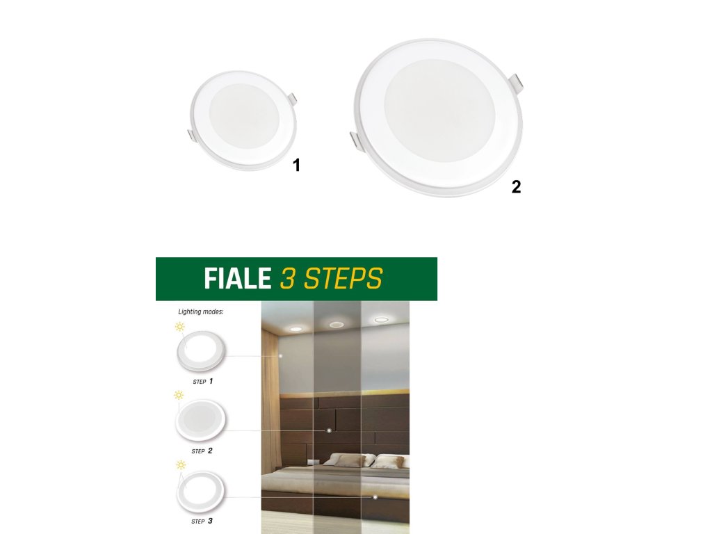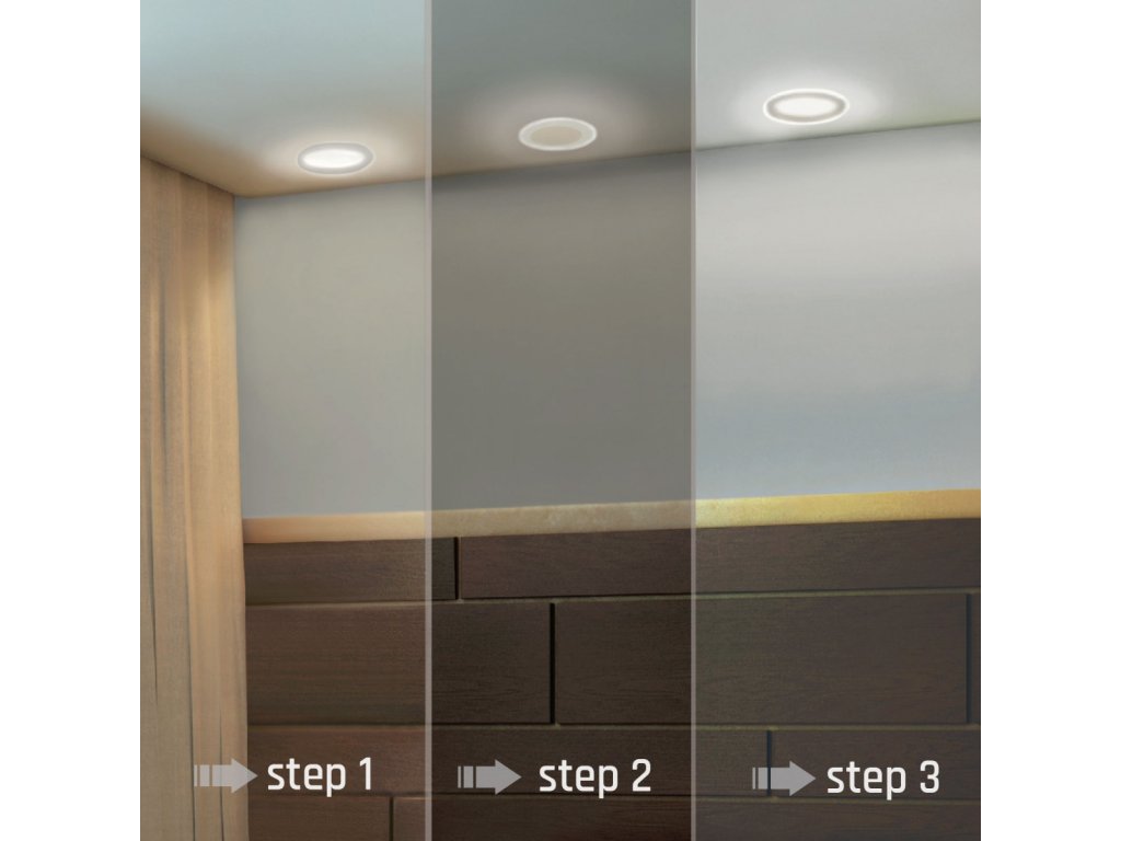 - Drei Stufen der Dimmung über den vorhandenen klassischen Schalter – 100 %, 70 %, 30 % (einfaches Dimmen durch einfaches, schnelleres Aus- und Einschalten des Schalters nacheinander) – die Anschaffung eines teuren Dimmers ist nicht erforderlich