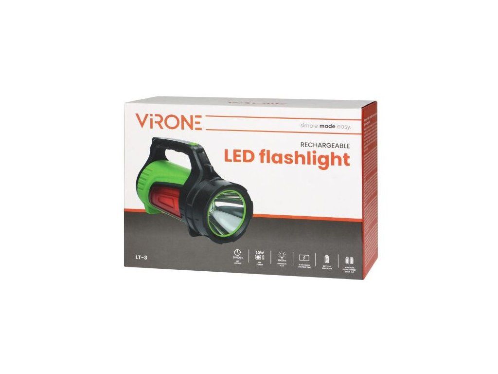 VIRONE LED-Taschenlampe, wiederaufladbar mit Powerbank, 10 W, 1000 lm [LT-3]