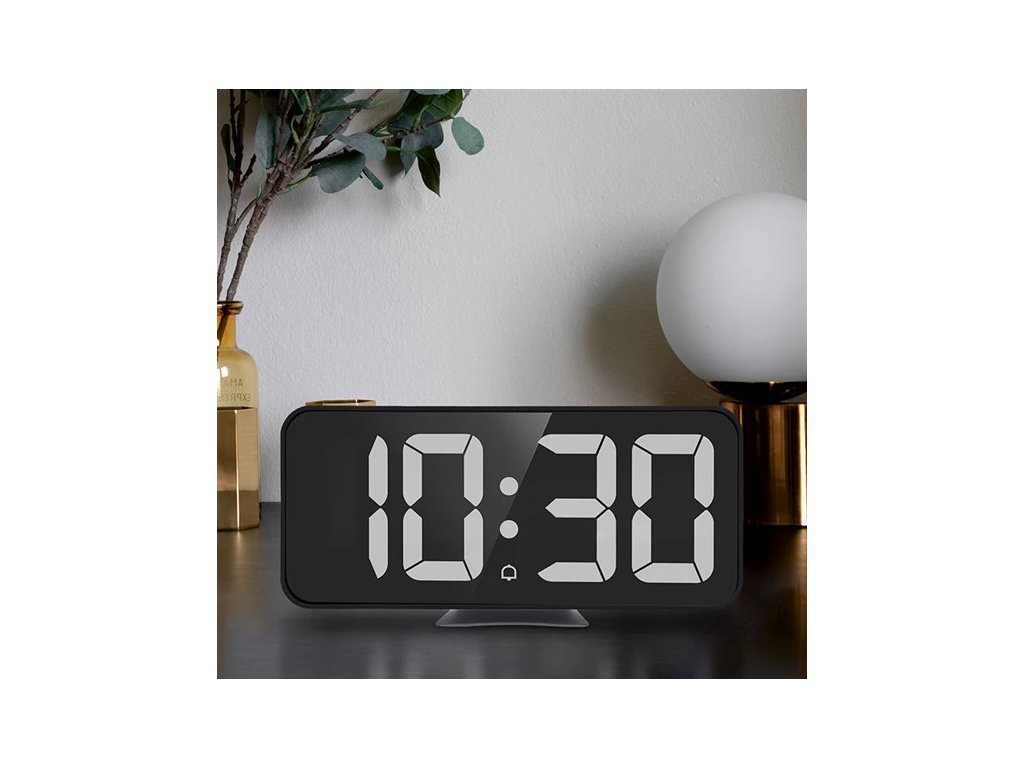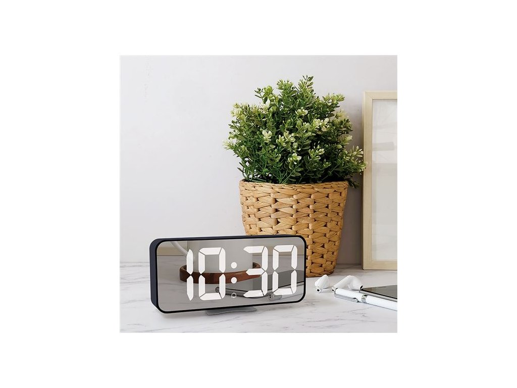 - Spiegelndes LED-Display mit Uhrzeit- oder Temperaturanzeige (Anzeigeumschaltung möglich)