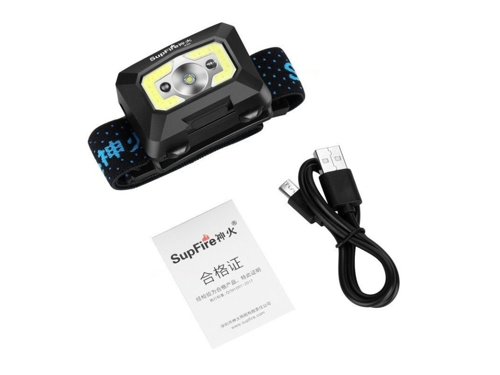 LED-Akku-Stirnlampe Supfire X30, 5 Leuchtmodi + Sensor, Aufladen über Micro-USB, 5 W, 340lm, 120m